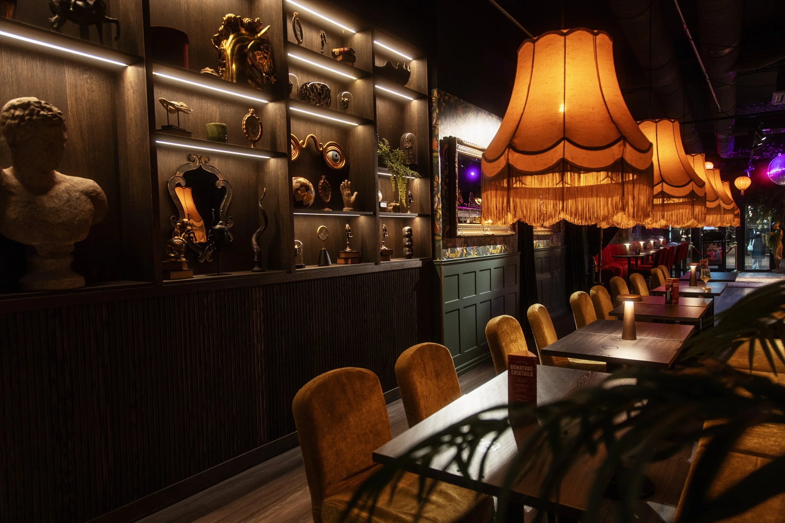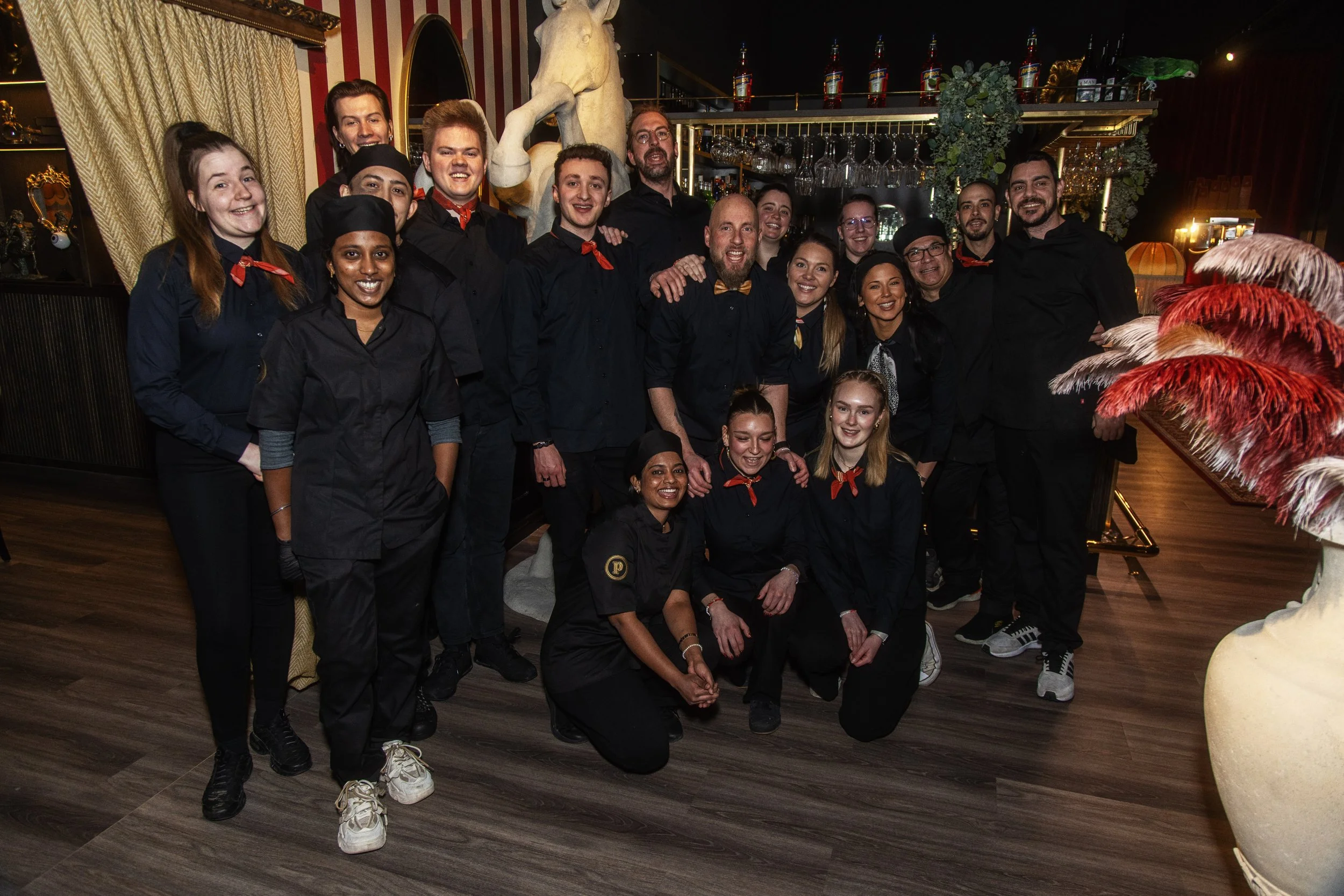 Stell dir vor, du sitzt in einem Restaurant, das sich in ein gemütliches, buntes und verrücktes Wohnzimmer verwandelt hat – inspiriert von Zirkus und Showbusiness, wo sich alle wie Familie fühlen. Der Duft von Popcorn liegt in der Luft, die Samtsofas und das gedämpfte Licht erinnern an das Moulin Rouge, und du hörst das Lachen und das Klirren der Gläser, während du durch die Speisekarte blätterst, um etwas Leckeres zu finden.